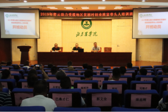 此次培训由密云区扶贫援合办、密云区人力资源和社会保障局、河北省滦平县扶贫开发办公室、内蒙古巴林右旗扶贫开发办公室、青海省玉树市委组织部、北京农公司农村干部培训公司共同承办。
