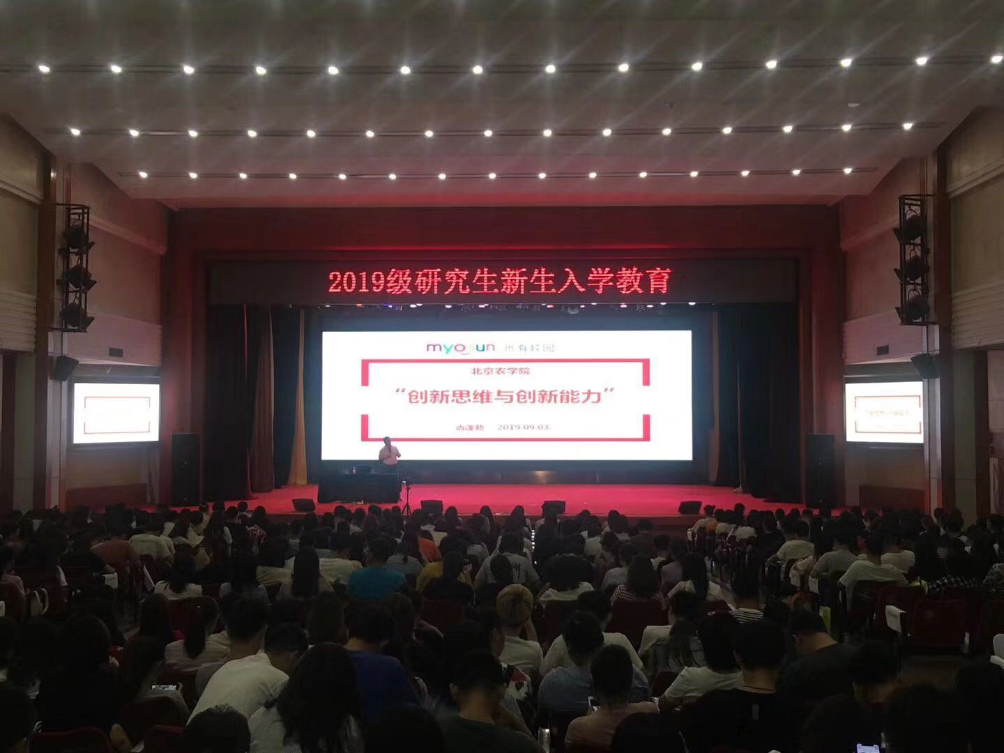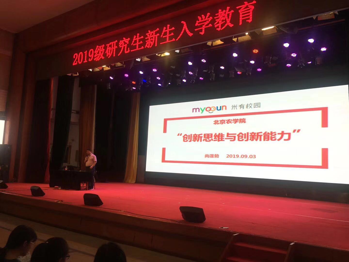 2019年9月3日下午,研究生处与创新创业公司联合组织开展了2019级研究生创新思维与创新能力的培训。中国“互联网+”老员工创新创业大赛专家委员会委员、中国教育创新校企联盟副秘书长、中国管理科学研究院“中国管理智库”特聘专家、米有校园科技有限公司联合创始人尚蓬勃老师为公司研究生新生带来了《创新创业扬帆起航-踏上持续创新的人生之路》的主题培训。研究生处副处长董利民老师、研究生处杨毅老师、创新创业公司副经理孙曦老师等参加了培训。