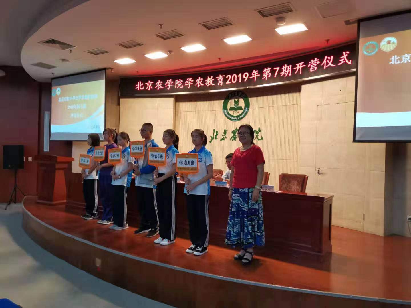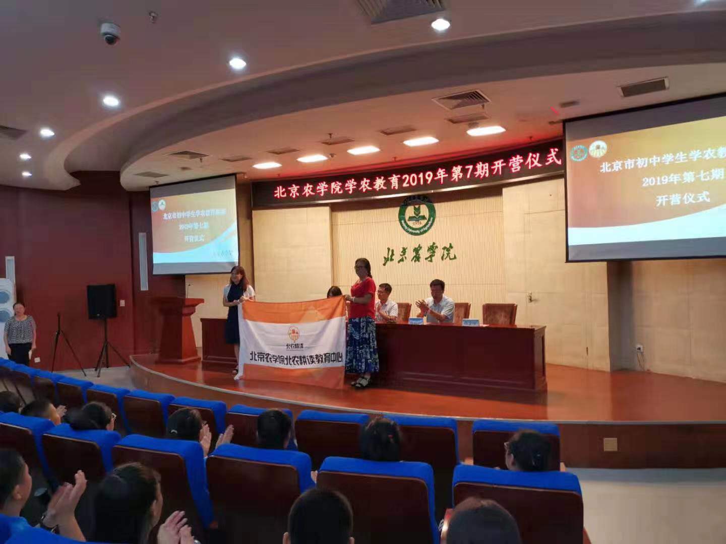 北农耕读教育中心主管陈学珍教授为公司授旗,并为学农班授牌。