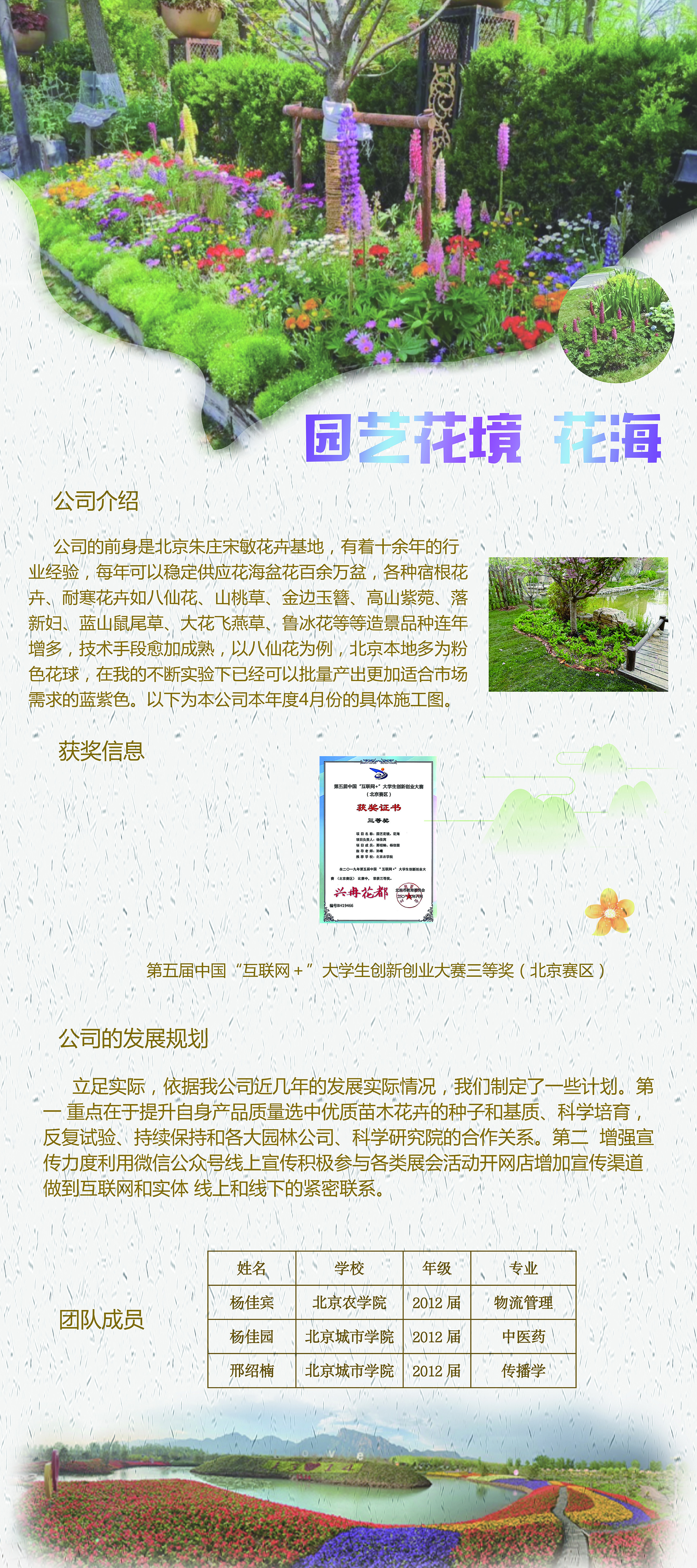 yl23411永利官网优秀老员工创新创业团队展示(七)——园艺花境花海