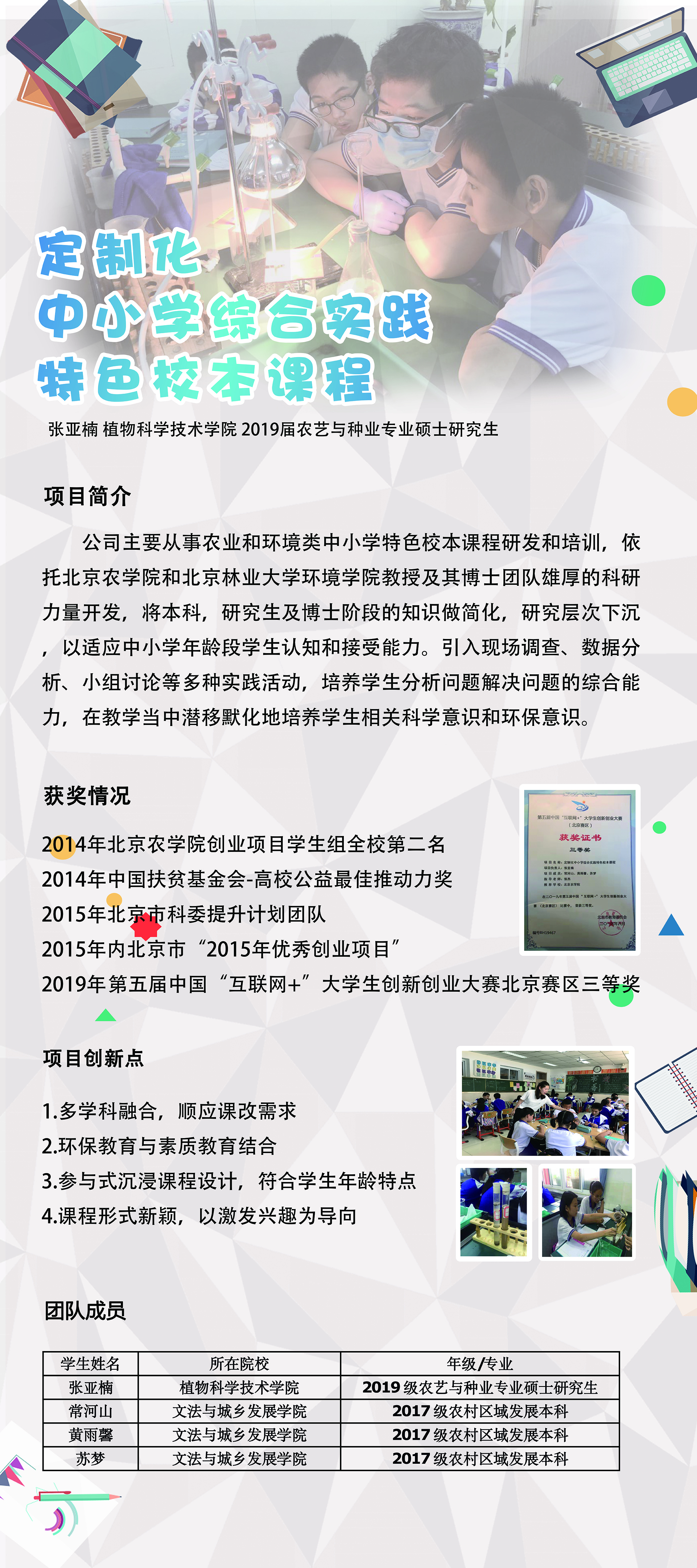 yl23411永利官网优秀老员工创新创业团队展示(二)——定制化中小学综合实践特色校本课程