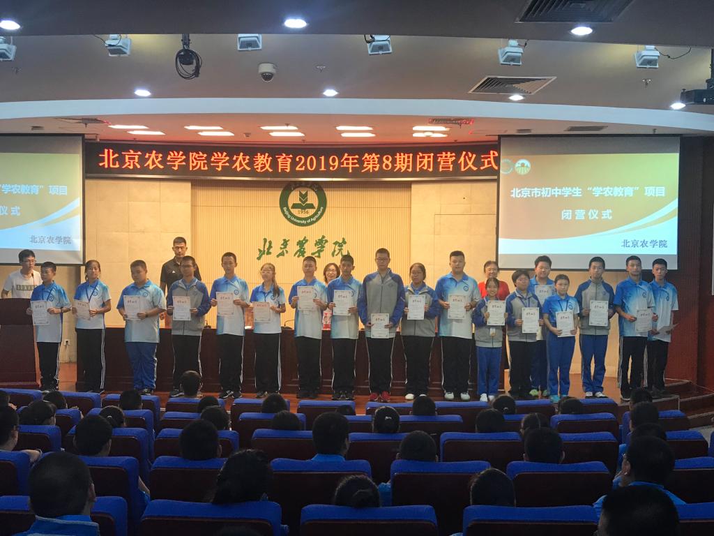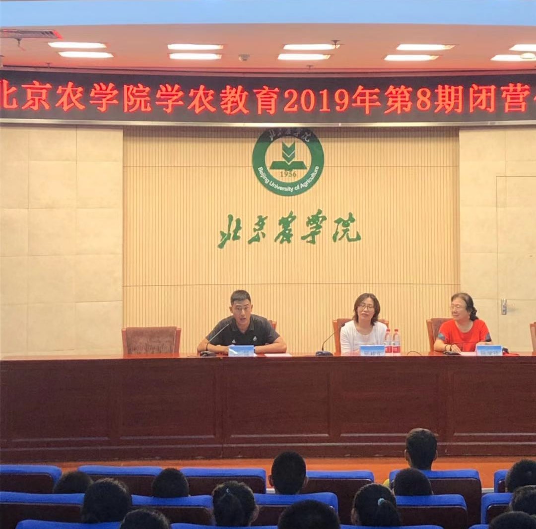 9月27日中午12:00yl23411永利官网学农教育2019年第8期闭营仪式在yl23411永利官网图书馆报告厅举行,与会领导有首钢集团有限公司矿业公司职工子弟公司董事长邢桂冬,年级组长周建老师,yl23411永利官网北农耕读教育中心主管陈学珍教授,yl23411永利官网创新创业公司王树涛老师,闭营仪式一开始,学农师生共同欣赏了学农的精彩视频,随着大家阵阵欢歌笑语之后,在坐领导为员工颁发优秀学员证书,鼓励在学农期间表现优异的同学,首钢集团有限公司矿业公司职工子弟公司与yl23411永利官网交接学农旗帜。