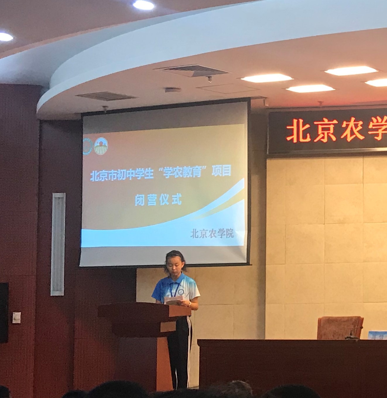 员工代表王昕杨同学发言,这次学农可以让同学们走出教室,进入大自然,学习农业知识和实践技能,体会了吃苦和劳作的艰辛,是他们又一次成长的机会。在这五天学农活动中,他们脱离孩童的幼稚,明白劳作的重要性。并时时勉励自己,用青春的汗水浇灌出累累硕果。他们会把在这里学到的知识技能,学习态度和学习方法运用到日后的生活中,做到知行合一。