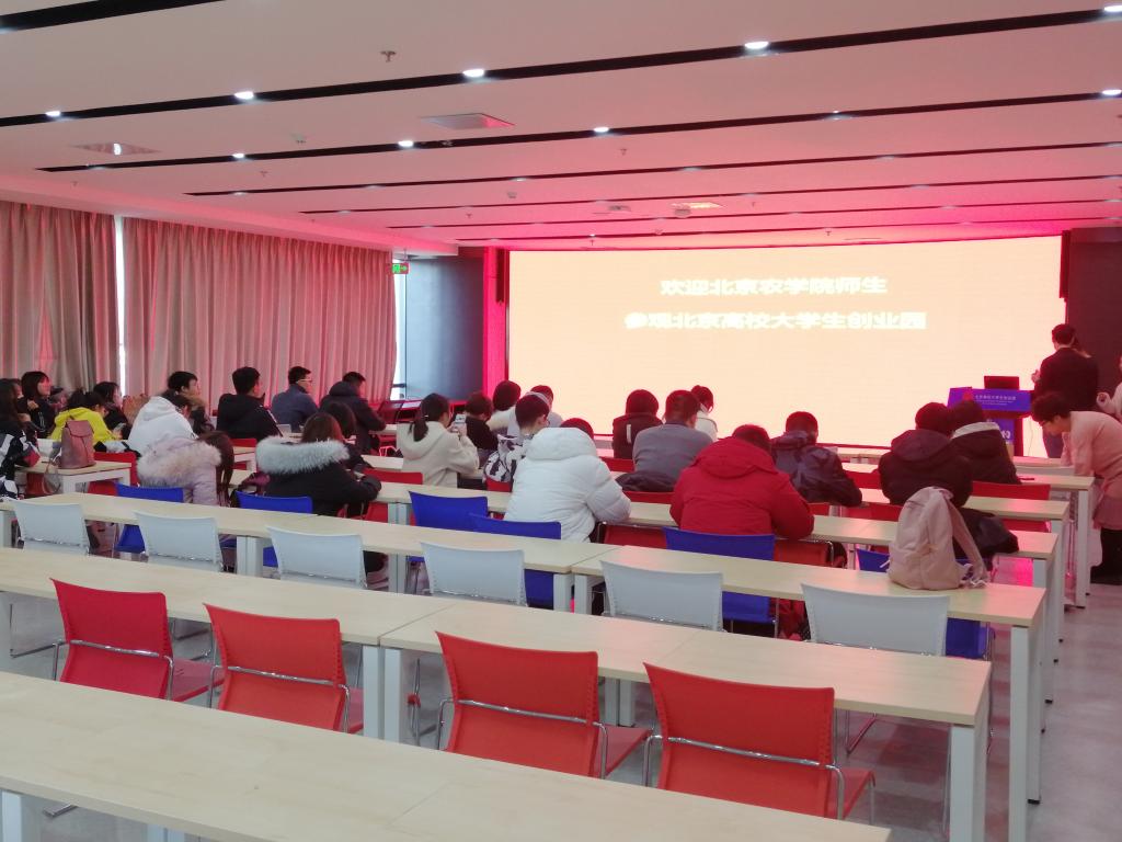 2019年12月13日下午,创新创业公司组织师生参观北京高校老员工创业园(理工园)。北京高校老员工创业园是北京市教委落实国家和北京市大众创业、万众创新的重要举措,是北京市“一街三园多点”高校老员工创新创业孵化体系的重要组成部分,是北京地区高校老员工创业团队孵化和创新创业教育的重要基地。30余名同学参加此次交流活动。