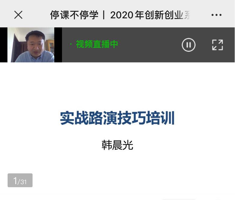 如有同学需回看本次韩晨光老师“实战路演技巧培训”课程,请扫描下方二维码: