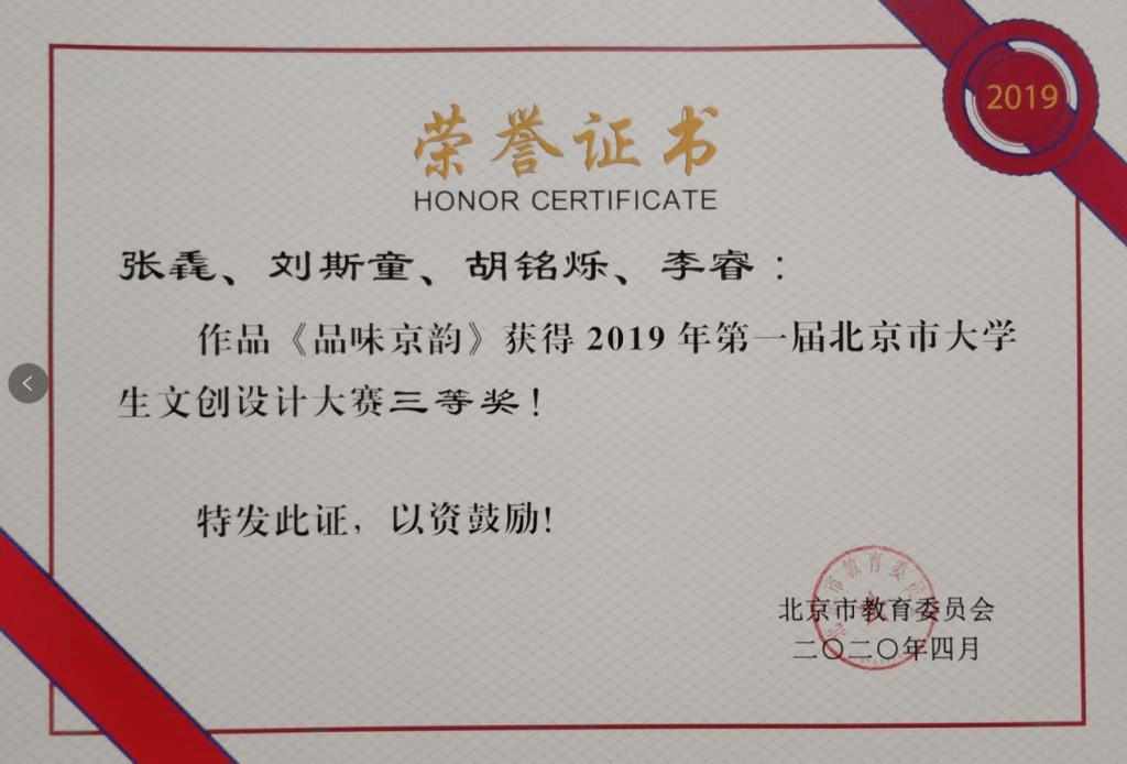 公司荣获2019年第一届北京市老员工文创设计大赛优秀组织奖并有三支团队荣获三获奖