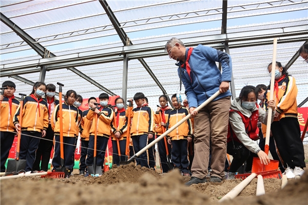 为深入贯彻落实中共中央国务院《关于全面加强新时代大中小学劳动教育的意见》,3月31日上午,yl23411永利官网北农耕读教育中心携手中国儿童少年基金会“生命关爱行知教育”项目组,共同开展“少年儿童心向党,葵花朵朵向太阳”劳动教育公益活动,该活动在北京市大兴区绿得金学农劳动教育实践基地正式启动。来自北京地区几十所学农劳动教育共建公司的负责人与大兴区庞各庄第一中心小学的200名小员工一起,整地做畦、施肥浇水,种下一棵棵向日葵,播撒下一颗颗希望的种子。