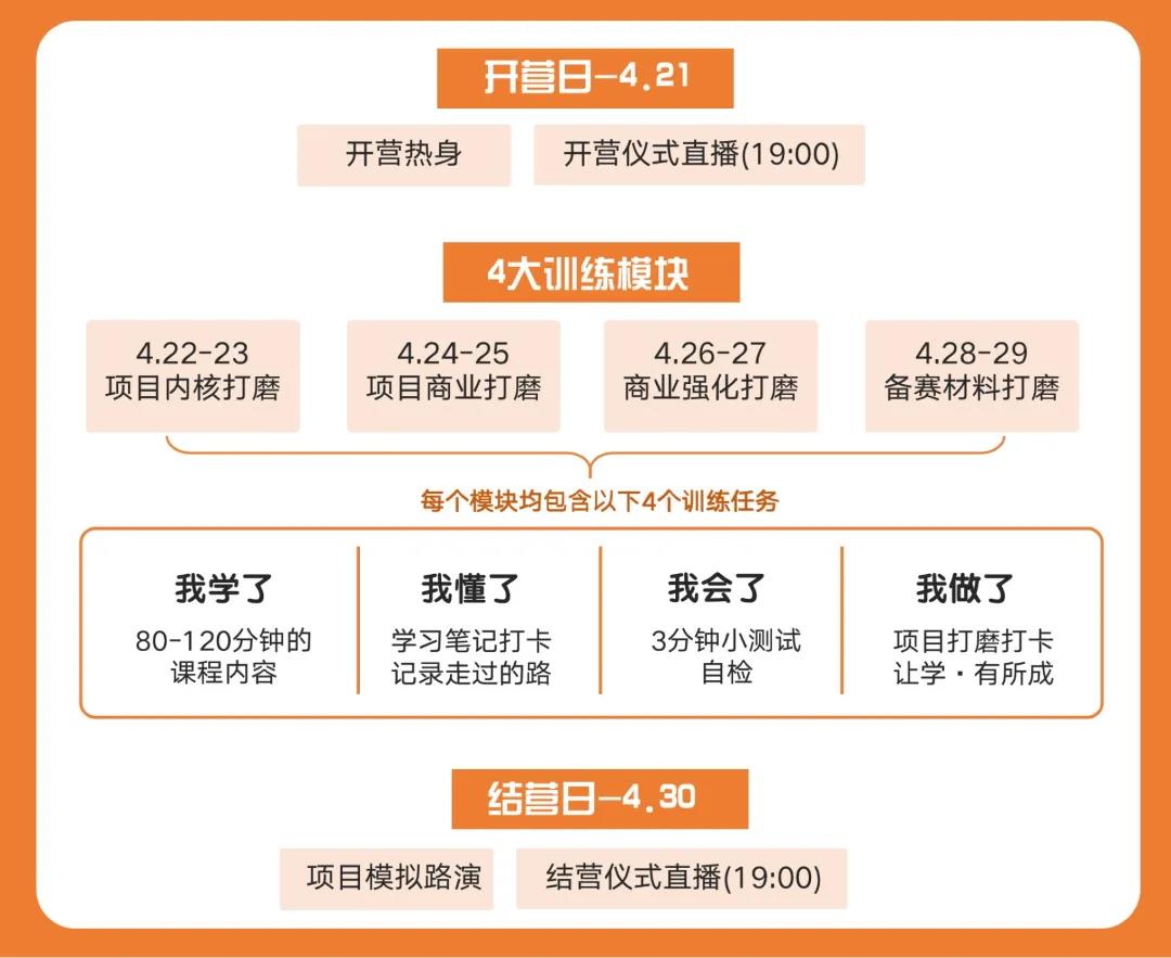 本期的星火春训营不仅做到了学(学习课程)练(打卡输出)结合,更有问(一对一提问)、辅(一对一辅导)、赛(模拟路演赛) 相结合。让项目团队能享受到更多针对性提升的机会。