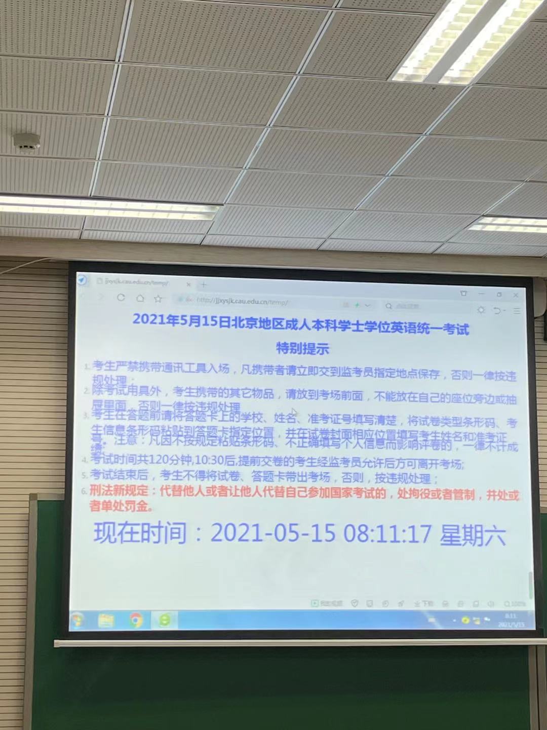 2021年上半年北京地区成人本科学士学位英语统一考试于5月15日上午9:00正式开始,本次公司共有70名成人本科员工报名参加,因疫情影响本次考试公司成人本科员工在中国农业大学考点参加考试,考试于当日11:00顺利结束。