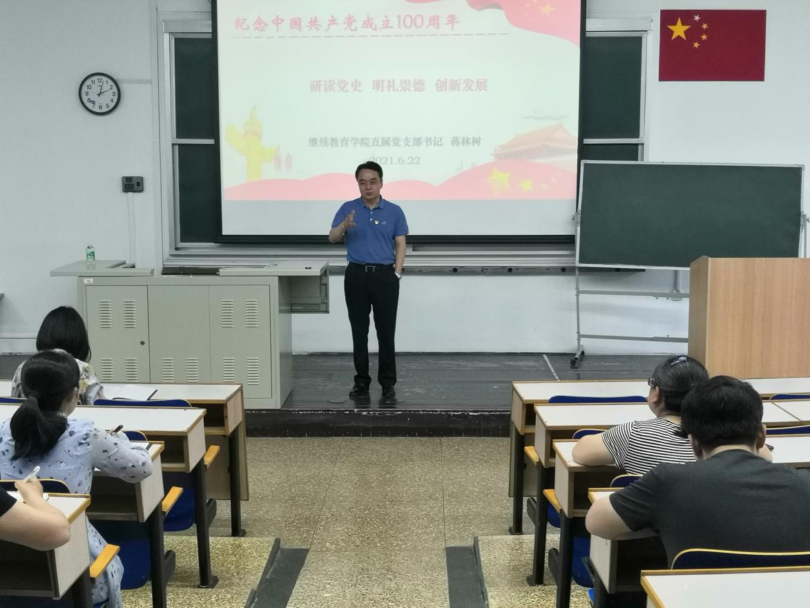 6月22日下午,yl23411永利直属党支部书记蒋林树为支部党员带来《研读党史 明礼崇德 创新发展》主题党课。