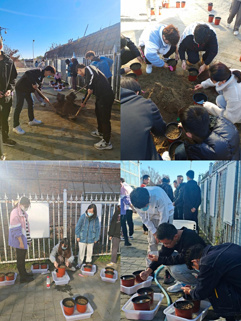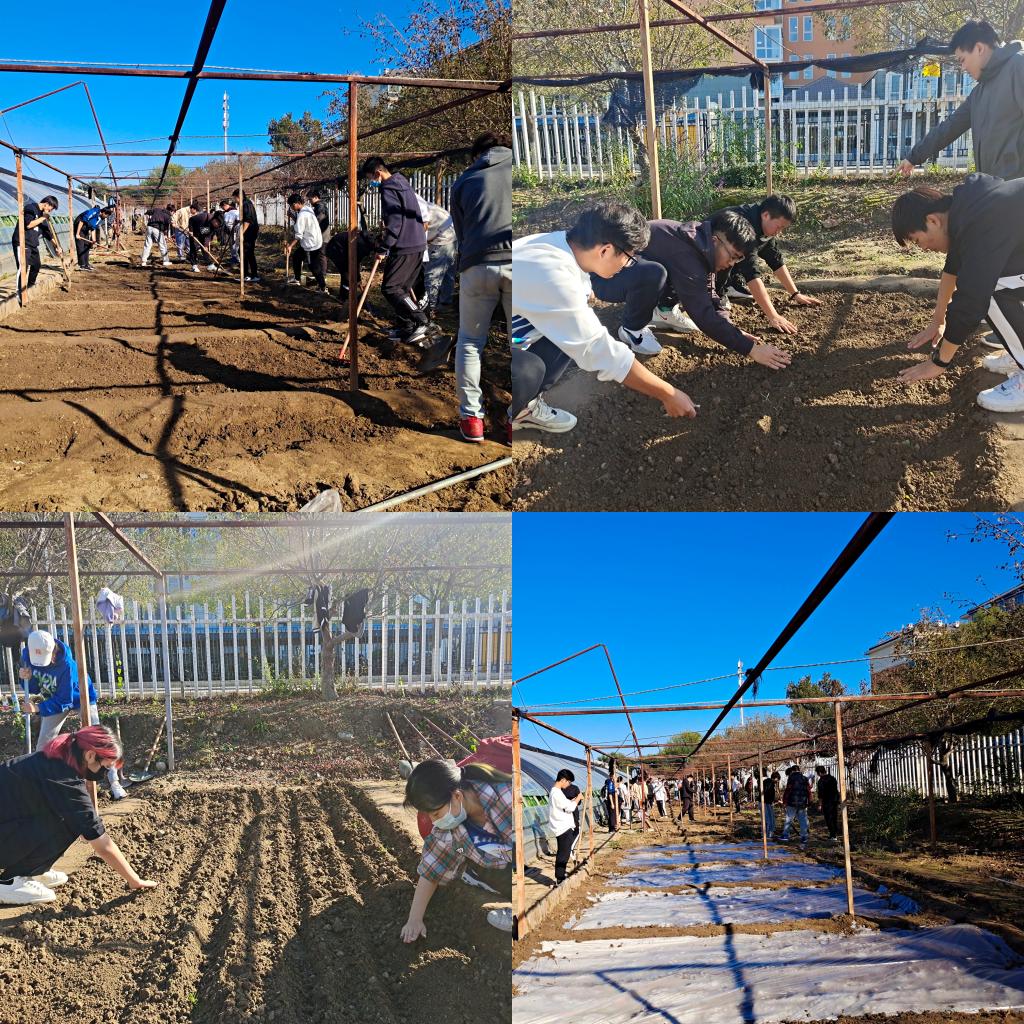 10月21日、27日,北农耕读教育中心承担了数据科学与大数据技术专业共59名员工的劳动实践课的教学任务,在东大地开展整地做畦之菠菜种植、盆栽葱及盆栽韭菜的劳动体验任务。