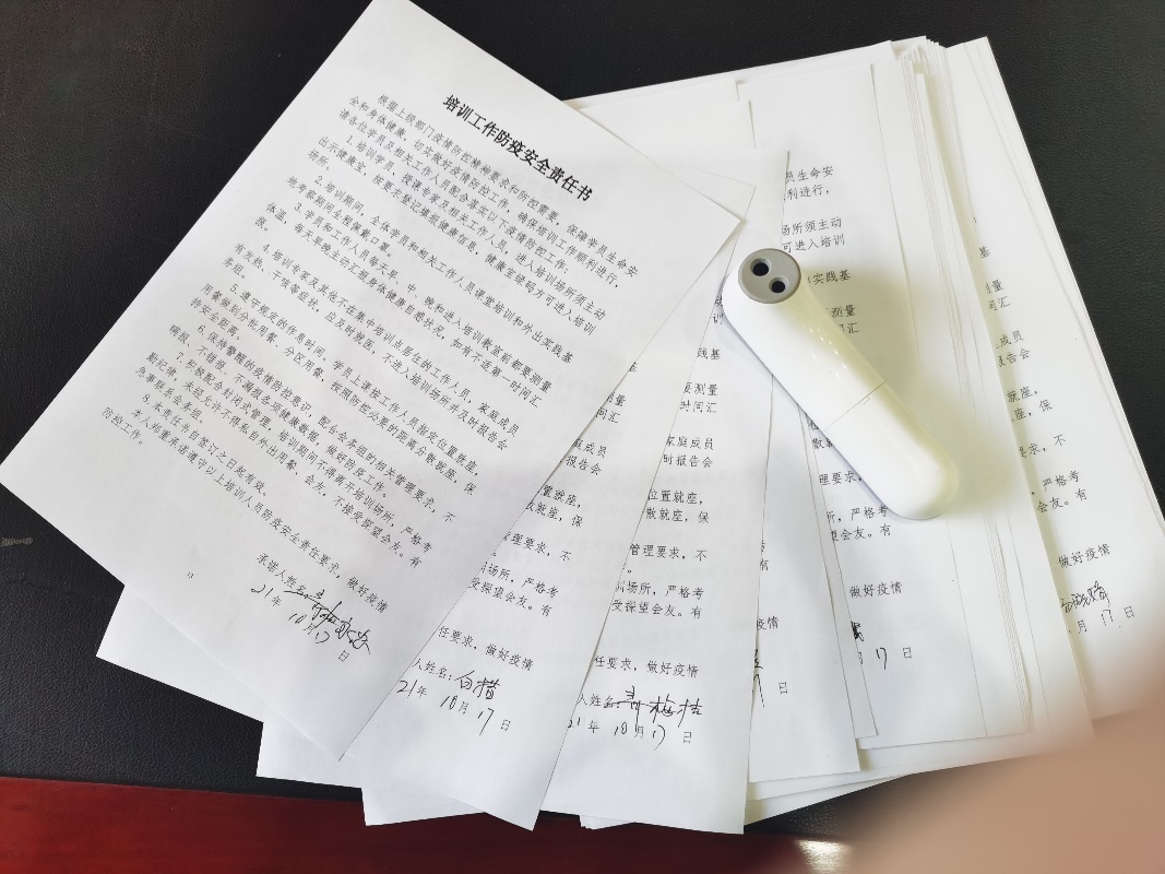 鉴于疫情的严峻形势,农村干部培训公司深入调研,制定了《培训会务疫情防控管理工作方案》并严格执行,要求所有培训学员和工作人员学习疫情防控规定并签订《培训工作防疫安全责任书》,先期收集学员信息,全程健康监测。培训期间,内蒙古疫情形势趋紧,培训班对所有学员一对一溯源登记,查验健康行程码,监测体温,对任何可能有时空交叉的情况特别谨慎对待,确保第一时间隔离疫情上的任何风险。培训过程中,时间上连续不间断,空间上防疫零死角,安排学员隔天进行核酸监测。10月23日培训结束,学员完成核酸检测后返程。新疆学员热比罕·麦提赛迪因当地疫情防控要求,需要另行在京单独隔离,培训班为此精心安排照顾,该学员也于11月2日返回新疆家中。至此,培训班所有学员全部健康安全地返回家中。