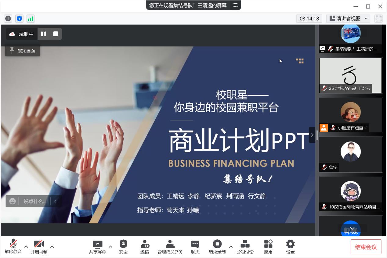 参赛团队围绕电子商务从创新性、创意点等多方面对项目进行阐述,认真回答评委提问,在多方的互动中进一步加强自身对项目的挖掘。
