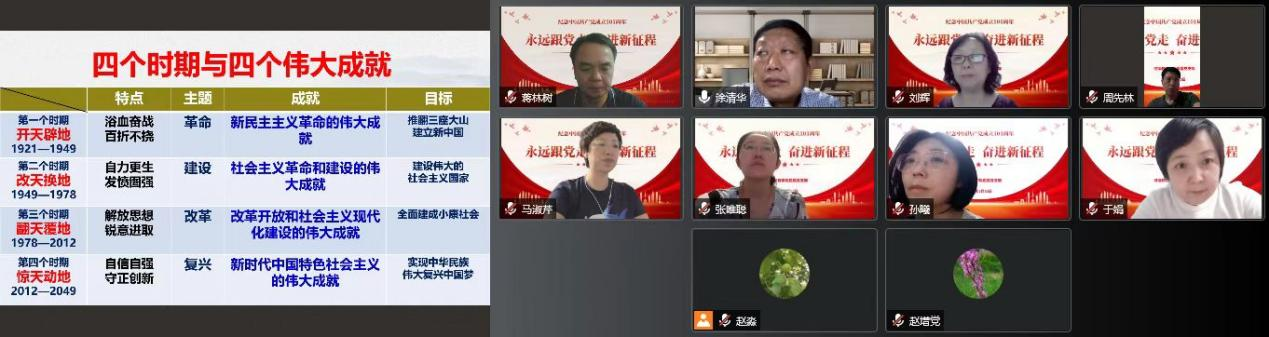 涂清华教授围绕中共党史现实意义,中共党史的基本脉络,中共党史的主要经验三个方面,从思想到理论实践的把握、从国际与国内的比较、从史到今至未来的贯通等层面,对党的历史深入而生动地进行了解读,从党建引领脱贫攻坚、党建引领乡村振兴进行了讲解,并用大量详实的事例讲述了党在我国发展历史上的重大意义和力量。