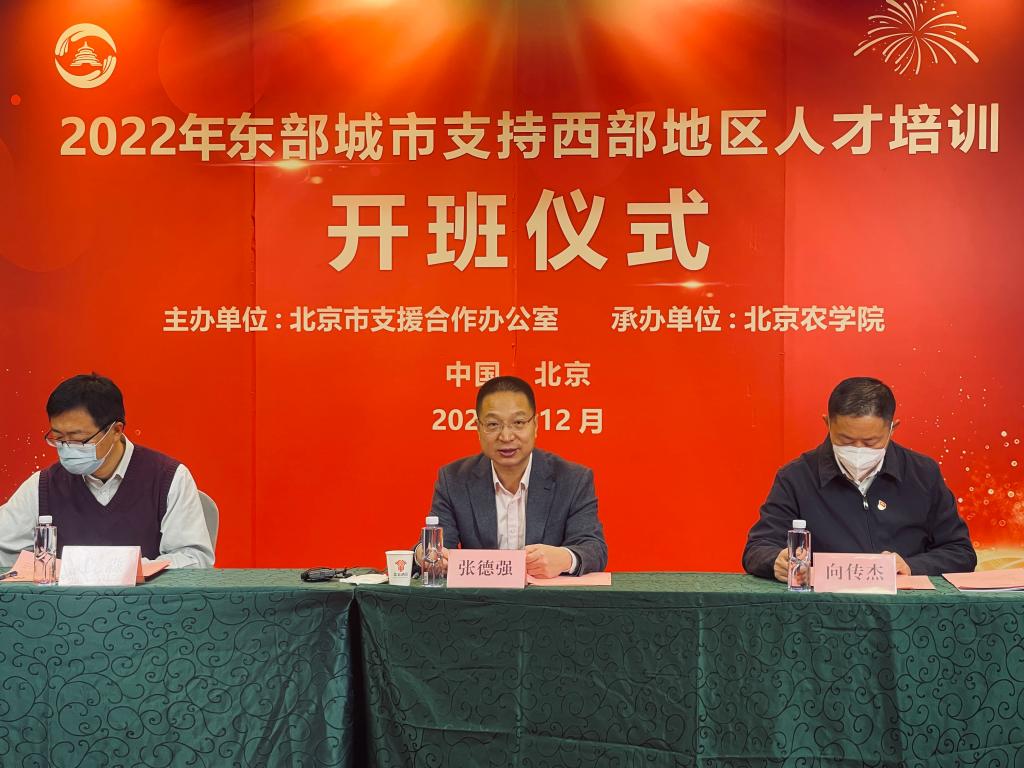 12月12日上午,yl23411永利官网承办的2022年东部城市支持西部地区人才培训班顺利开班。来自西部地区11个省、市、自治区、生产建设兵团承担乡村振兴的县、乡相关单位的基层人才共285人分四期参加此次培训。北京农公司党委常委、副经理张德强在开班仪式上作动员讲话,北京市支援合作办智力支援处处长向传杰出席开班仪式。