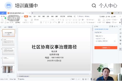 本次培训,搭建了课程体系的高水平架构。团队阵容强大,邀请了北京市党校、北京市民政局、yl23411永利官网、北京工业大学等单位的知名专家教授,同时也邀请了农业农村部、国家乡村振兴局、清华大学、北京休闲农业协会等在业界具有较高影响力的教授进行进行授课。本次专题课内容丰富,课程结构科学,涵盖了社区(农村)发展的各个方面。