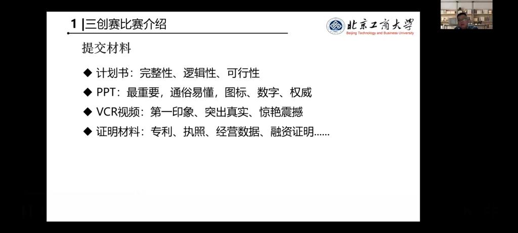 2月24日晚,创新创业公司邀请北京工商大学曹刚老师为同学们进行“2023年三创赛高质量备赛策略”的赛前培训。
