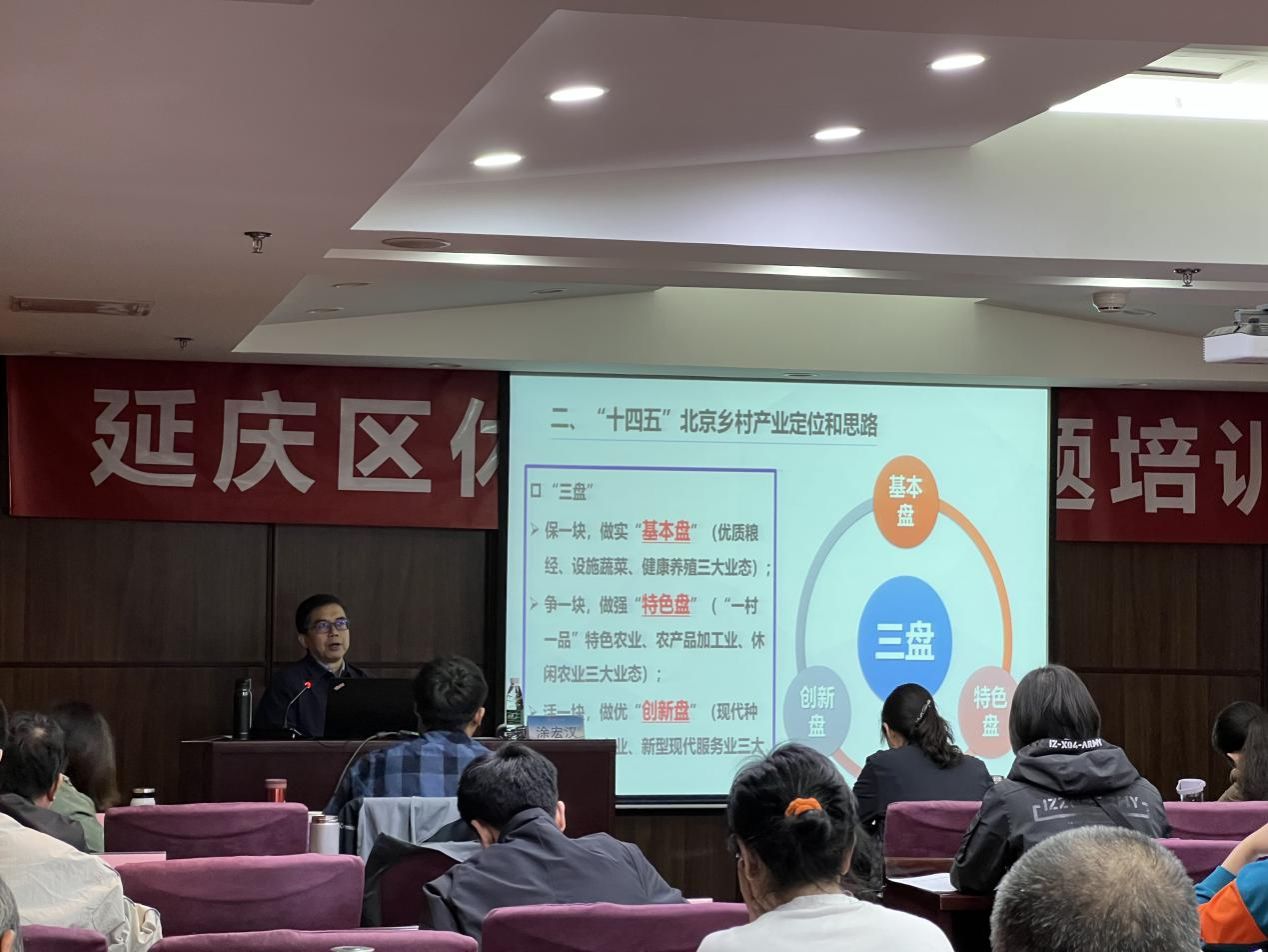 北京市农业农村局产业发展处处长涂宏汉出席开班仪式并为学员亲自授课,课程紧扣学员需求,分享了如何确定乡村产业发展方向和定位、北京乡村产业定位和思路以及乡村产业发展的路径和方法等方面的内容。延庆区农业农村局副局长马俊飞作动员讲话,强调了培训目的和培训要求,鼓励大家珍惜学习机会,学以致用,切实把休闲农业相关项目落实到位,带动村镇产业发展。