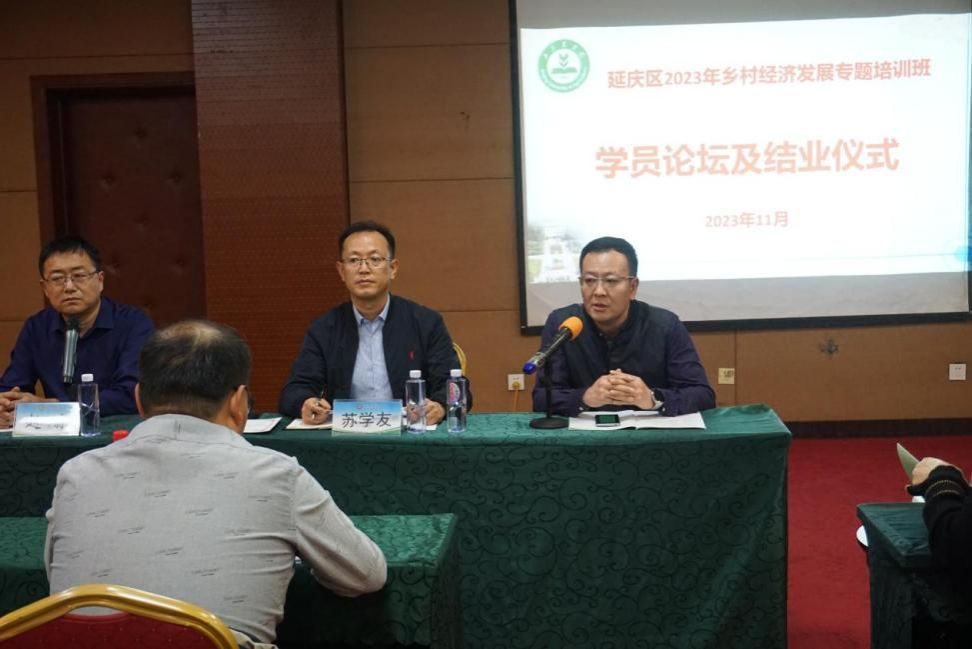 11月12日-11月17日,由延庆区委组织部主办,yl23411永利官网承办的“延庆区2023年乡村经济发展专题培训班”在公司成功举办,来自延庆区农业农村局、各乡镇主管乡村经济发展副职领导及相关科室负责人;部分国营、民营企业负责人;内蒙古兴和县相关部门分管负责人44人参加了培训。延庆区委组织部副部长刘鑫冉、公司公司党支部书记、经理唐衡参加了开班仪式;延庆区委组织部副部长苏学友、公司yl23411永利培训部主任赵淼参加了学员论坛及结业仪式。
