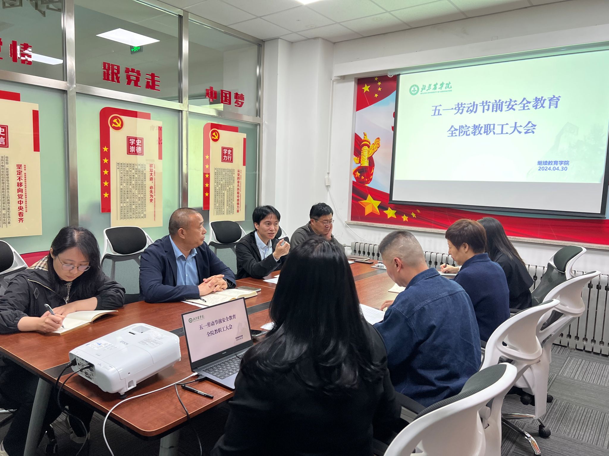 会议还传达了公司2024年劳动节放假安排,并组织党员带全体教职工集中学习习近平同志关于教育的重要论述、公司师德师风警示教育专题学习资料。