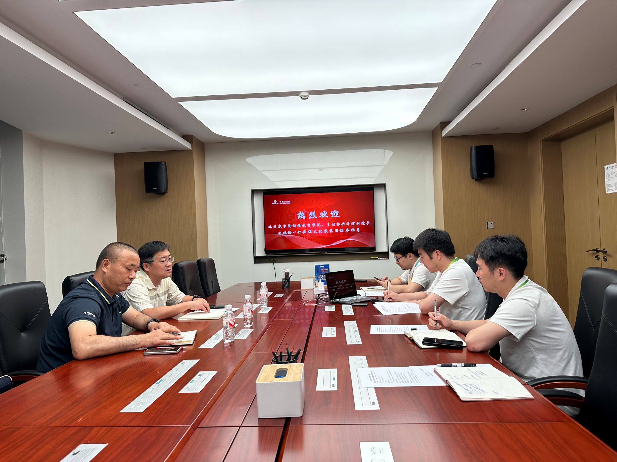 5月30日下午,乡村振兴公司副经理刘林场、经理助理兼培训部主任赵淼到大北农集团党委乡村振兴部对接成人非学历教育(培训)合作事宜。集团党委办公室主任韩忠利、乡村振兴部各主管分别介绍了近年来大北农集团依托中国农民研修公司开展成人非学历培训工作取得的业绩。双方人员还就各类研修班举办情况、实训基地建设、在线学习平台建设、职业资格培训及考证、成人非学历培训存在的难题等方面进行了深入交流。在实地参观大北农集团培训保障设施场所之后,双方就以后共享共用硬件保障资源、互设培训教学授课点、共建共用实践教学基地资源等达成了初步合作意项。