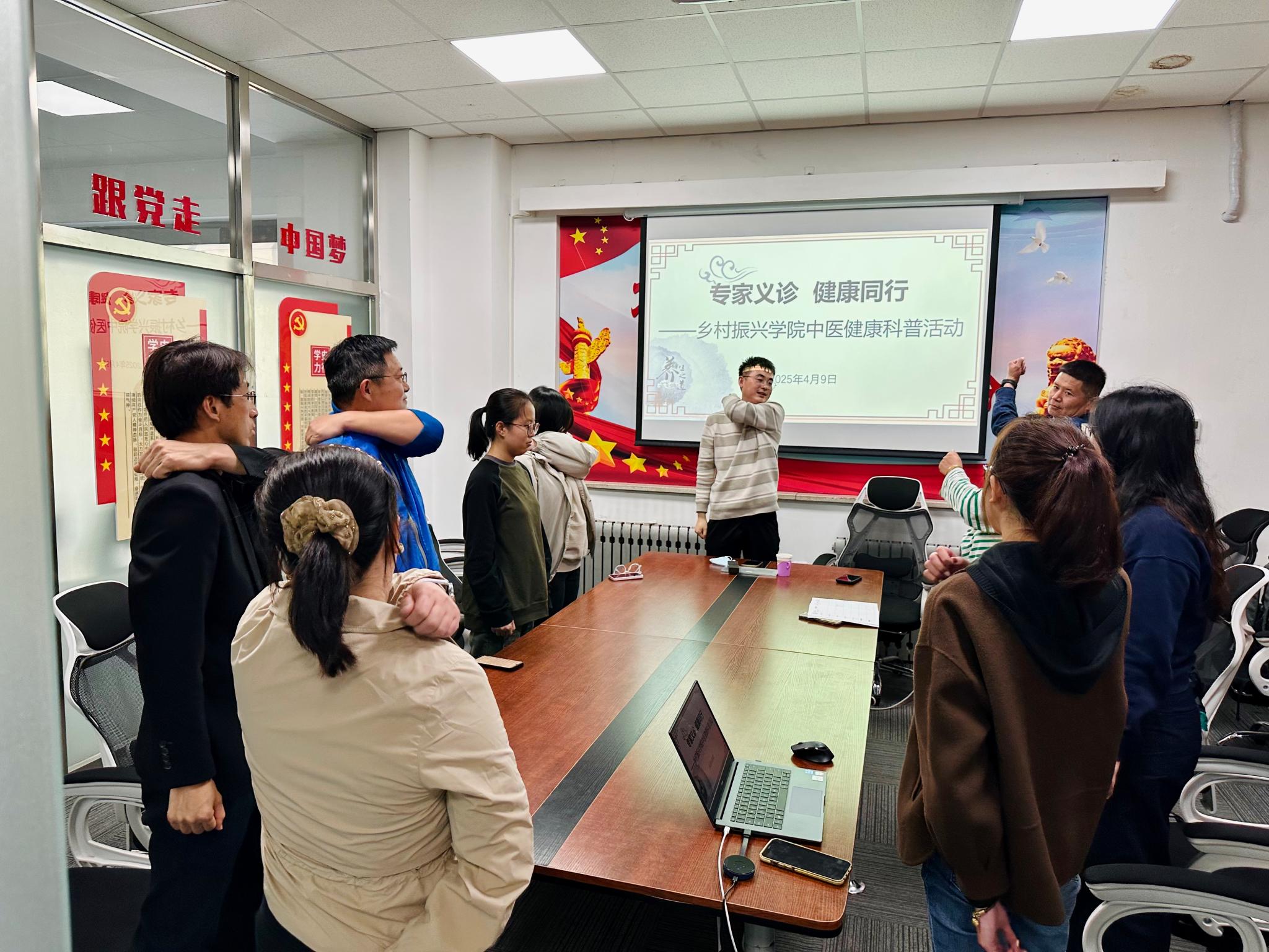 为贯彻落实国家卫生健康委办公厅《全民健康素养提升三年行动方案(2024-2027年)》,yl23411永利官网乡村振兴公司于2025年4月9日举办“健康你我,快乐工作”主题活动,特邀北京中医研究院张志伟医师为教职工普及养生知识,提升健康素养,掌握基本健康实操技术。
