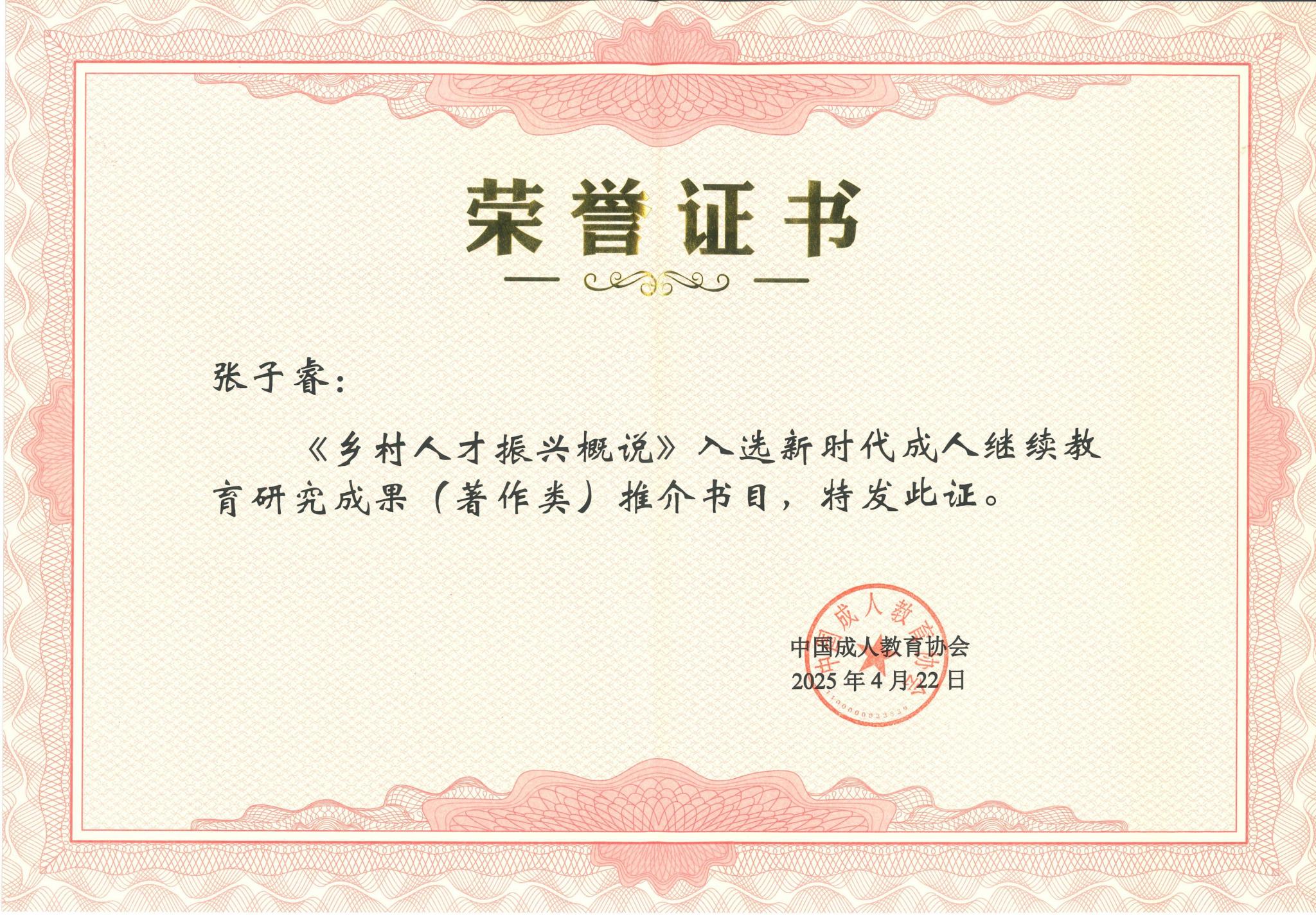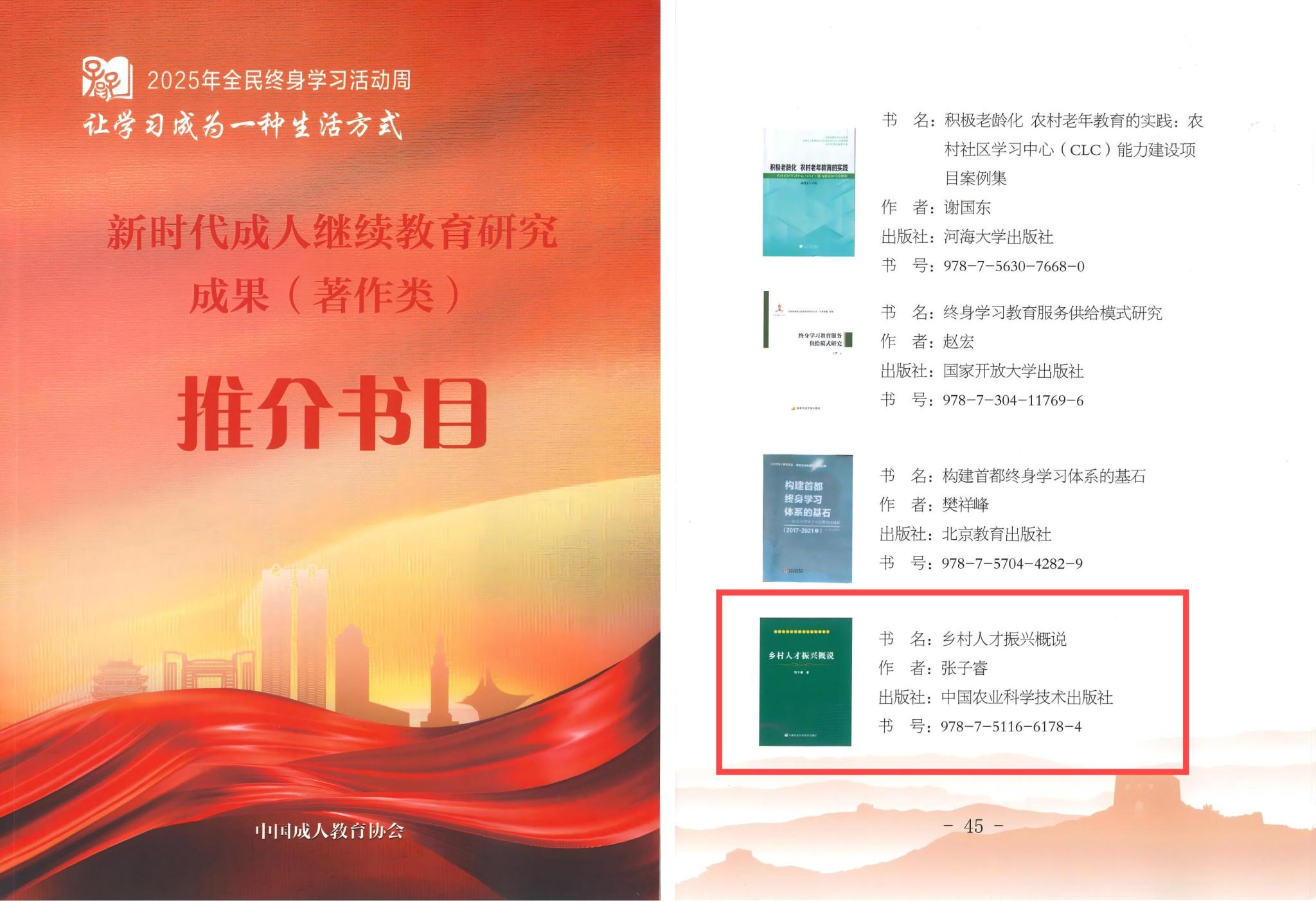 为全面贯彻党的二十大精神,认真落实建设全民终身学习的学习型社会、学习型大国的要求,中国成人教育协会和北京市成人教育学会相继发布了《关于征集新时代成人继续教育学术专著的通知》,yl23411永利根据通知要求积极开展优秀成果的征集和上报工作。经中国成人教育协会专家组审定,公司张子睿老师编著的《乡村人才振兴概说》入选新时代成人继续教育研究成果(著作类)推介书目。