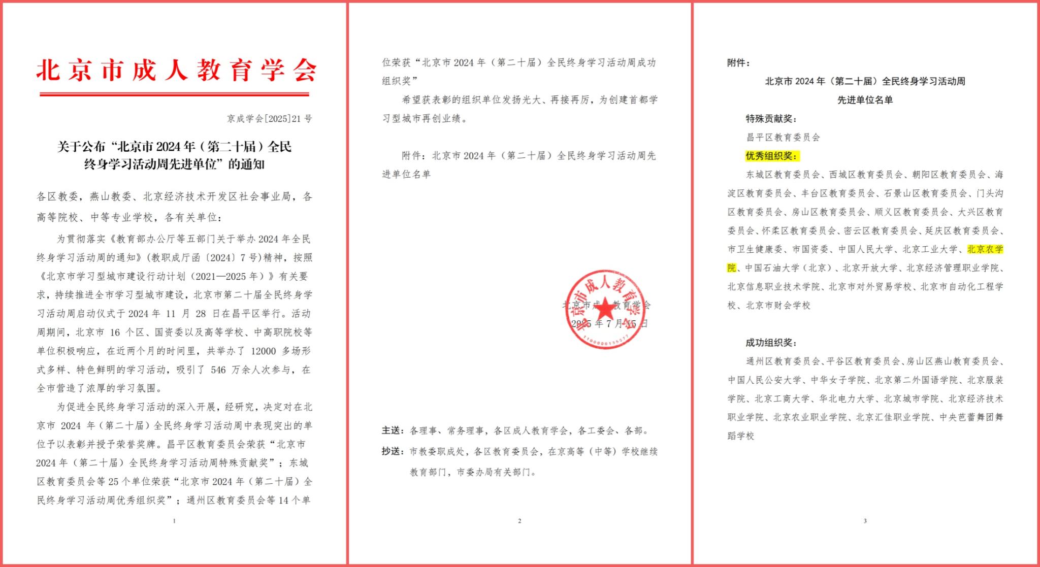 近日,北京市成人教育学会公布了“北京市2024年(第二十届)全民终身学习活动周”先进单位名单,yl23411永利官网荣获“优秀组织奖”。此次获奖中,公司不仅与中国人民大学、北京工业大学、中国石油大学(北京)等高校共同跻身先进单位行列,更成为全市获此殊荣的2所市属本科院校之一。