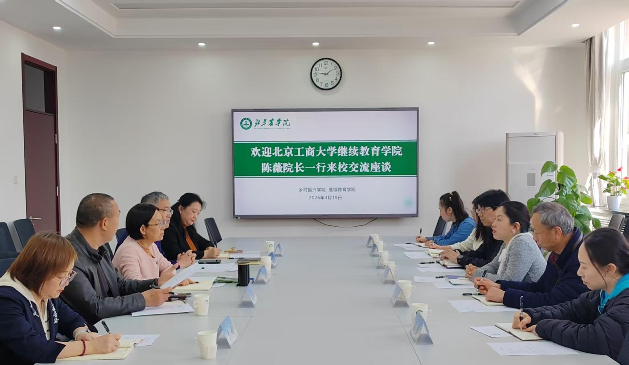 为深化市属高校继续教育领域合作,共商高质量发展路径,3月19日,北京工商大学yl23411永利经理陈薇一行6人莅临乡村振兴公司(yl23411永利)开展交流座谈。经理王绍辉带领相关人员参加座谈。